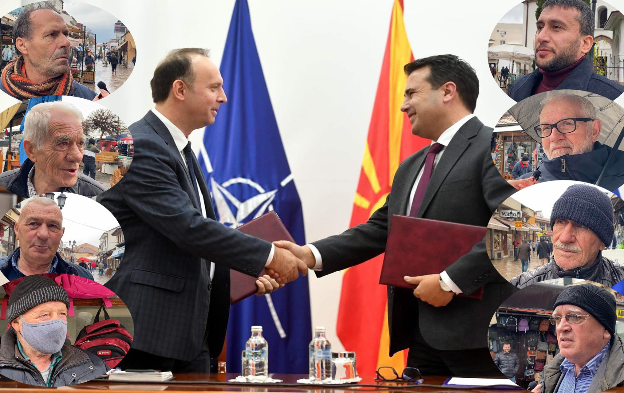 Kryeministri Zoran Zaev dhe kryetari i “Alternativës” Afrim Gashi të dielën kanë firmosur marrëveshjen për përfshirjen e kësaj partie opozitare në Qeveri. Kjo parti, me 4 deputetë, i ka siguruar shumicën parlamentare partive në pushtet, të cilat pas largimit nga Qeveria të lëvizjes Besa, kishte mbetur me 60 deputetë. Pas marrëveshjes për të hyrë në Qeveri, është prishur koalicioni opozitar që kishte “Alternativa” me Aleancën për Shqiptarët. Por, si e vlerësojnë qytetarët vendimin e partisë së Afrim Gashit për t’iu bashkuar Qeverisë? A u dëmtua opozita shqiptare me këtë vendim? Ekipi i gazetës Lajm ka zhvilluar një anketë në Shkup, me ç’rast qytetarët kanë shprehur qendrime të ndara. Një pjesë e tyre e kanë quajtur tradhëti ndaj ASH-së, hyrjen e Alternativës në Qeveri, ndërsa një pjesë tjetër kanë mirëpritur vendimin. Anketën e plotë mund ta ndiqni në videon më poshtë.