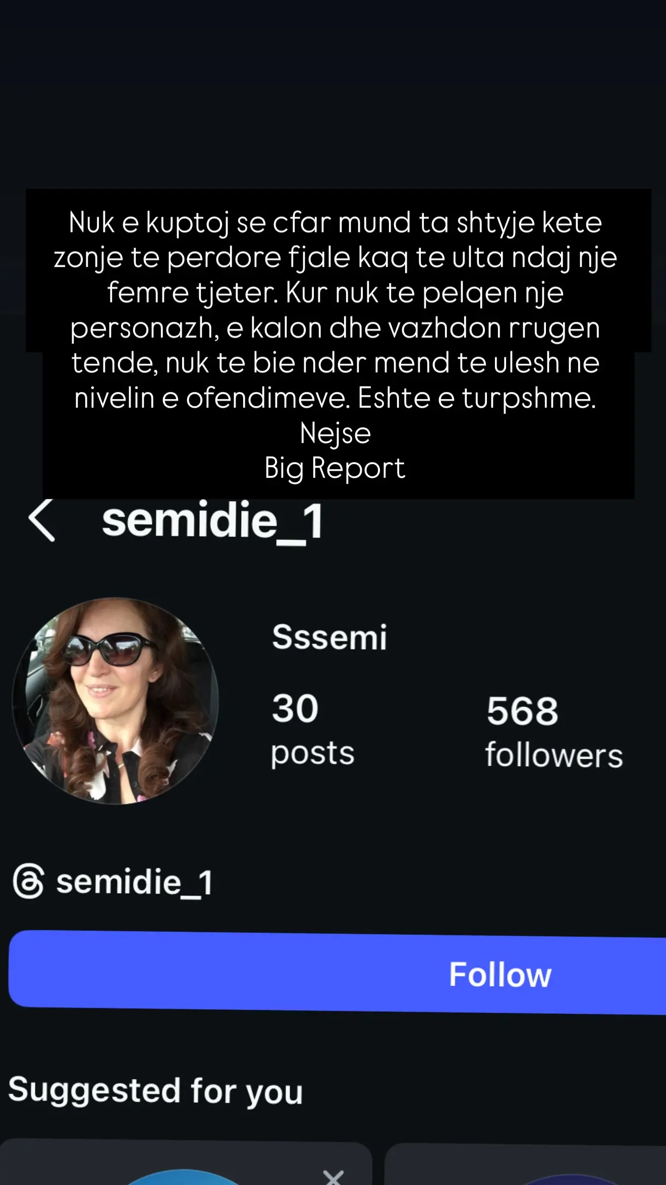 Në një postim në “Instastory”, Kiara ka publikuar emrin dhe foton e profilit të një zonje, duke shprehur habinë se si dikush mund të përdorë fjalë të ulëta ndaj një gruaje tjetër.