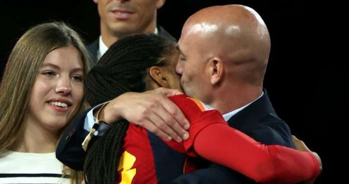 Luis Rubiales, presidenti i Federatës së Futbollit të Spanjës (FFS), ka shkaktuar zemërim të madh duke e puthur mesfushoren Jenni Hermoso gjatë ceremonisë së trofeut të Kupës së Botës për gratë.