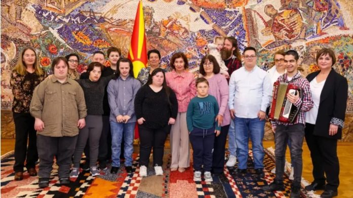 Presidentja Gordana Siljanovska-Davkova sot, në prag të 21 marsit – Ditës botërore të personave me sindromën Daun, priti përfaqësues të shoqatës për rehabilitim dhe përfshirje të personave me sindromën Down “Qendra ditore – Doza e lumturisë” nga Shkupi.