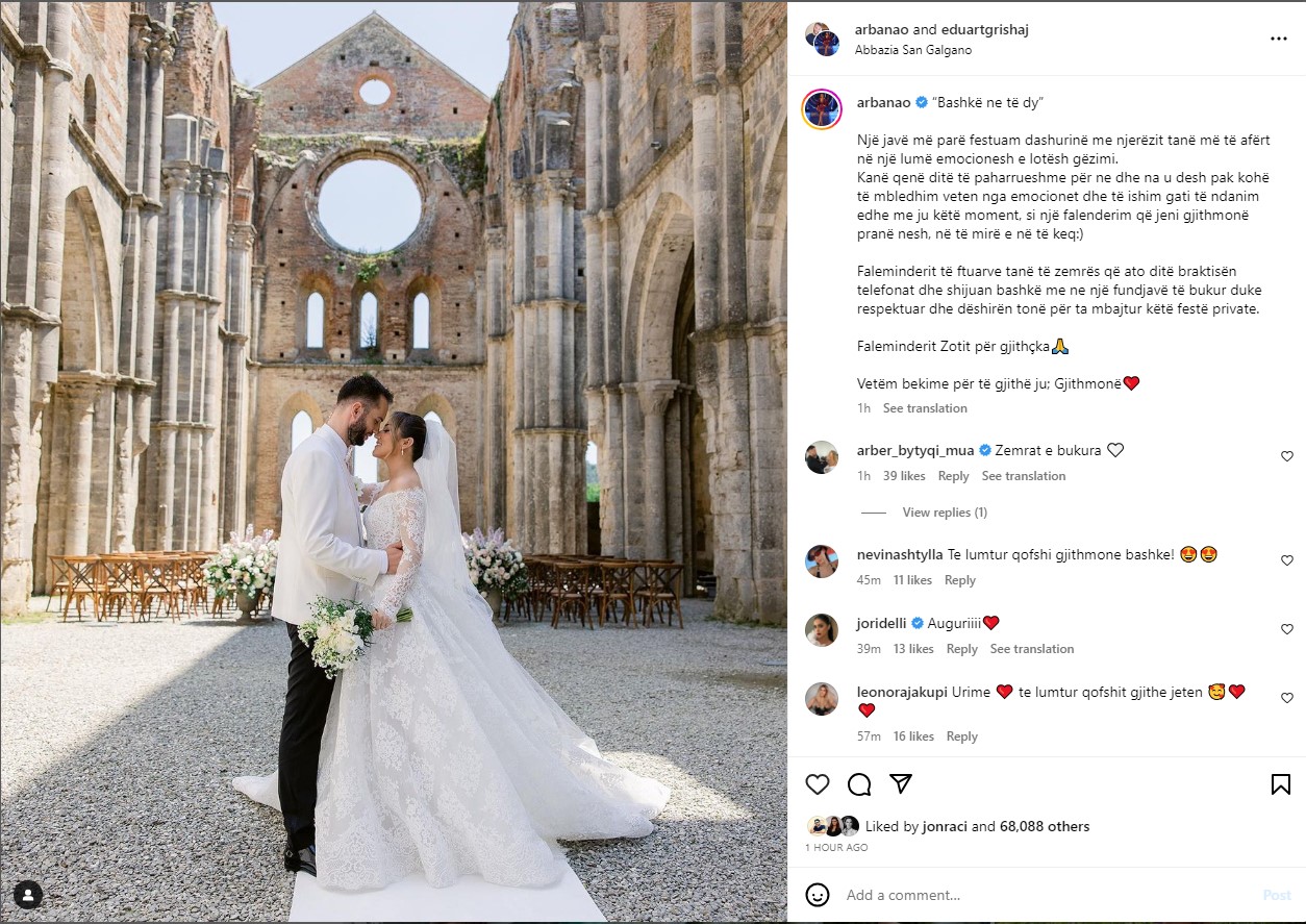 Arbana Osmani dhe Eduard Grishaj, kanë kurorëzuar dashurinë e tyre me martesë pak ditë më parë.