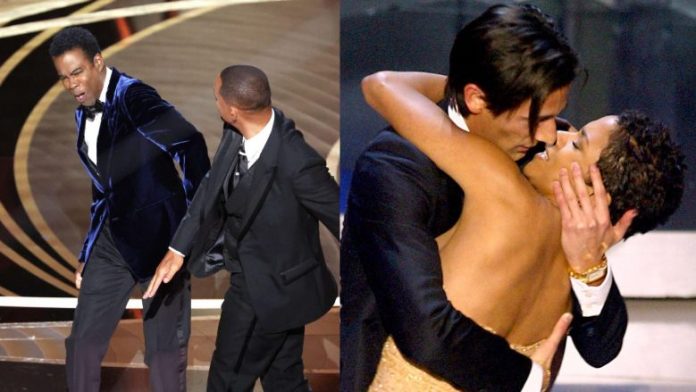 Ndërsa kamera tregon reagimin e audiencës, Will Smith duket se qesh së bashku me turmën në fillim, përpara se disa çaste më vonë të ngjitet në skenë dhe të godasë Rockun në fytyrë. Ai vazhdon të bërtasë me sharje ndaj Rockut edhe pasi ulet përsëri në audiencë.