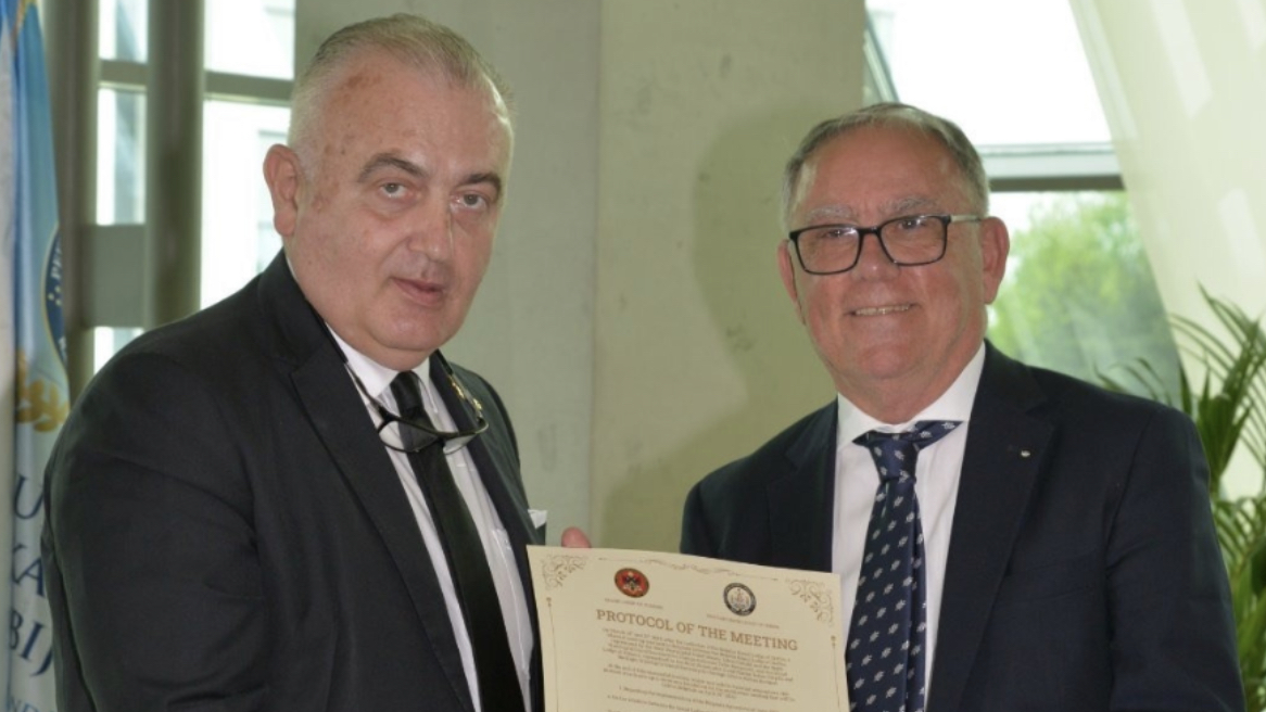 Lozha e Madhe e Rregullt e Serbisë: Lukas Rasuliç, Mjeshtër i Madh, nënshkruar në prani të Tahir Hasanoviq, Sekretar i Madh për Punë të Jashtme