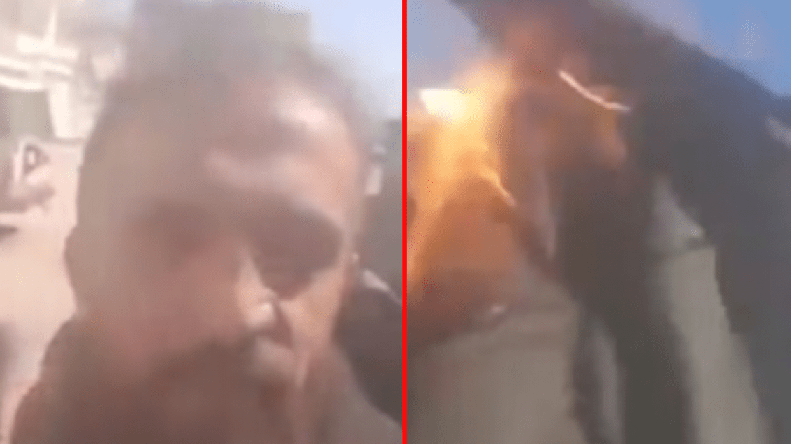 Pamjet që qarkullojnë në internet tregojnë Nizarin duke filmuar veten teksa i vë flakën ndërsa të pranishmit dëgjohen duke bërtitur.