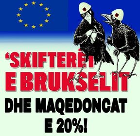 Skifterët e Brukselit janë të gjithë ata deputetë dhe ministra shqiptarë demagogë dhe servilë nga ‘Severna’ me plisa në kokë sa për sy e faqe, që u dhemb shpirti për sllavishten e Dhimos, ku ditë e natë punojnë për njohjen e ‘maqedonishtes’ si gjuhë zyrtare të BE-së dhe nuk guxojnë ta përmendin faktin se gjuha shqipe gjithashtu është gjuhë e afro gjysmës së popullsisë në ‘drzhavën Severna’, por që shteti dhe pushteti në marrëveshje të plotë me partitë politike shqiptare nuk e njeh gjuhën tonë të bukur si drita e diellit, siç është gjuha shqipe, po na quan me termin fyes si gjuhë e bashkësisë së 20%!