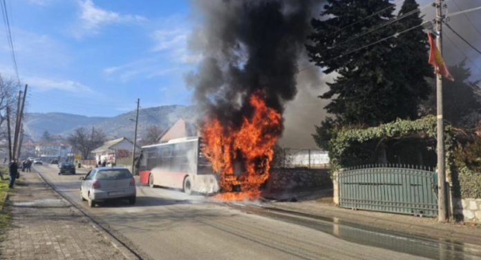 Në Komunën e Sopishtes digjet një autobus i Ndërmarrjes Publike të Transportit “Shkupi”.