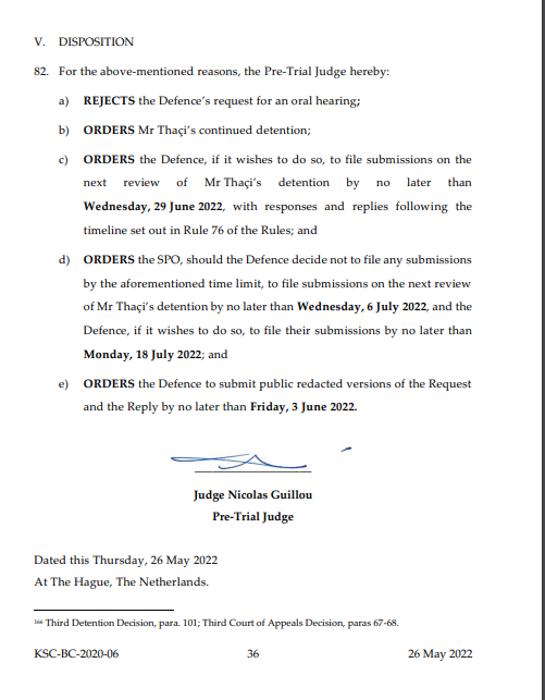 Me këtë rast, gjyqtari francez i procedurës paraprake ka urdhëruar që mbrojtja të dërgojë parashtresat e saja në lidhje me shqyrtimin tjetër të paraburgimit deri më 29 qershor, shkruan lajmi.net.