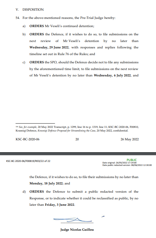 Me këtë rast, gjyqtari francez i procedurës paraprake ka urdhëruar që mbrojtja të dërgojë parashtresat e saja në lidhje me shqyrtimin tjetër të paraburgimit deri më 29 qershor, shkruan lajmi.net.