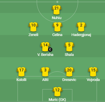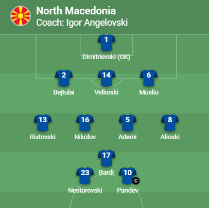 Në formacionin e Maqedonisë, startojnë pesë futbollistë shqiptarë; Enis Bardhi, Ezgjan Alioski, Arijan Ademi, Visar Musliu dhe Egzon Bejtulai.