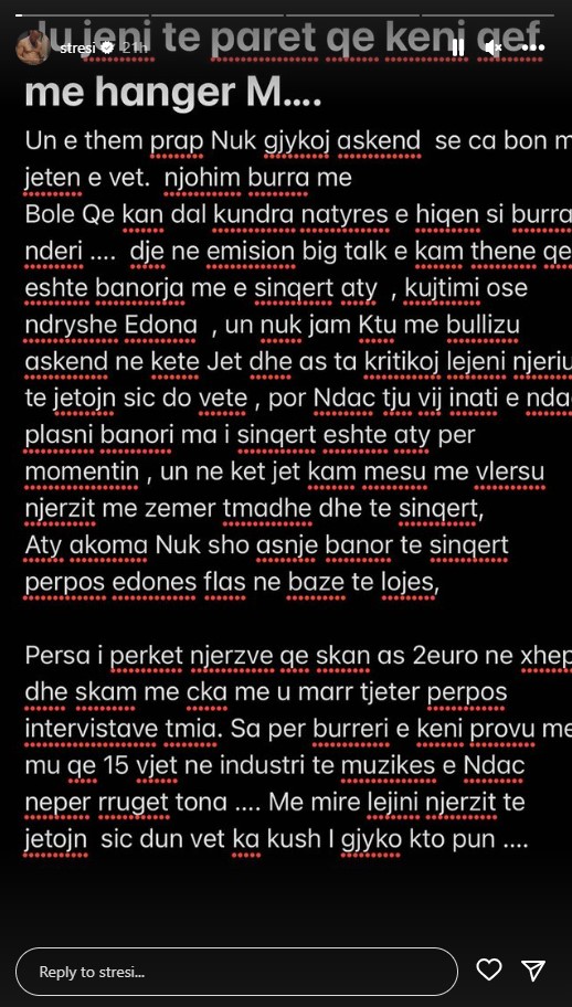 Një mendim lidhur me të e ka dhënë ish fituesi i edicionit të parë, Stresi.