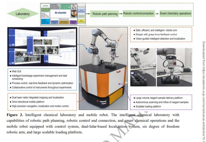 “AI-Chemist” mund të kontrollojë gjithashtu një robot të lëvizshëm në vend apo në internet për të kryer automatikisht një proces eksperimental të plotë mbi më shumë se 10 stacione pune.