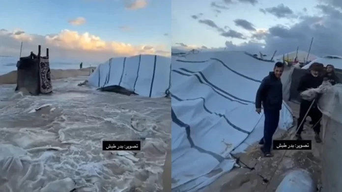 Qindra tenda për personat e zhvendosur, të vendosura në plazhin e Khan Younisit në jug të Rripit të Gazës, u përmbytën gjithashtu nga dallgët e detit të rritura për shkak të sistemit të presionit të ulët.