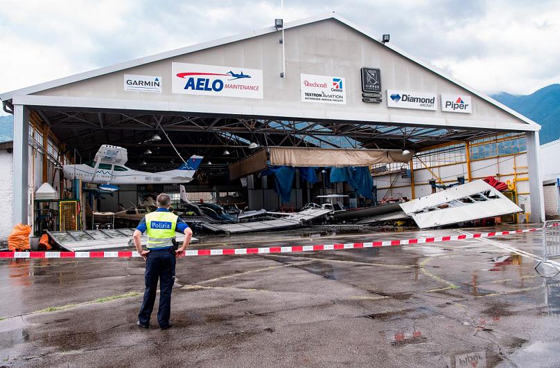 Policia zvicerane njoftoi se një hangar i aeroportit lokal në qytetin jugor të Magadino ishte shembur pjesërisht për shkak të erërave të forta dhe shiut të madh gjatë natës.