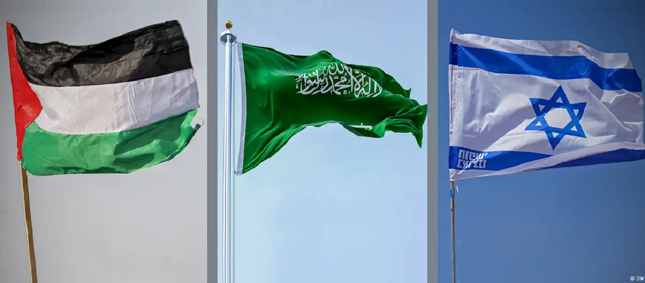 Por pas shpërthimit të luftës të shtunën (07.10.2023), Arabia Saudite është rikthyer sërish në opinionin publik në mbrojtjen e një zgjidhjeje me dy shtete dhe po e prezanton përsëri veten si një mbështetëse e vendosur e popullsisë palestineze. Ndërkohë, shumica e vendeve të tjera kanë shprehur mbështetje për Izraelin dhe të drejtën e tij për t’u mbrojtur.