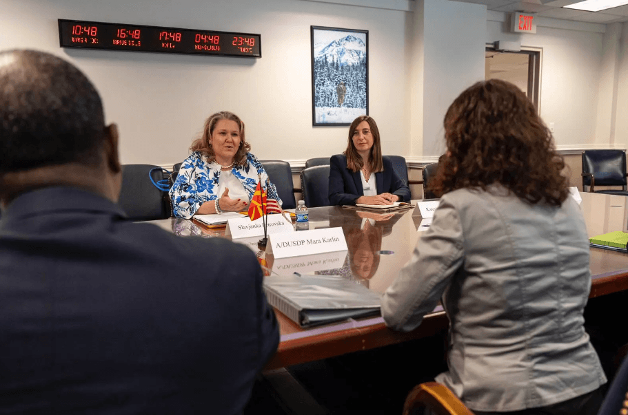 Ministrja e Mbrojtjes Sllavjanka Petrovska sot në Pentagon ka takuar Mara Karlin, ushtruese e detyrës së zëvendëssekretares së mbrojtjes së SHBA-së për politikë të mbrojtjes. Në takimin me Karlin, ministrja theksoi se bashkëpunimi i fuqishëm maqedono-amerikan rrit sigurinë dhe forcon mbrojtjen kolektive në Aleancë, transmeton Portalb.mk.