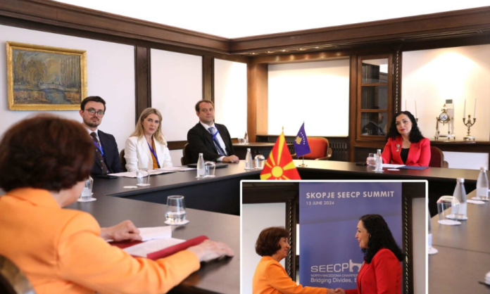 Presidentja e Maqedonisë së Veriut, Gordana Siljanovska Davkova ka realizuar takim me presidenten e Kosovës, Vjosa Osmani Sadriu në kuadër të Samitit të shefave të shteteve dhe qeverise të pjesëmarrëse në Procesin e bashkëpunimit në Evropën juglindore, transmeton TV21.