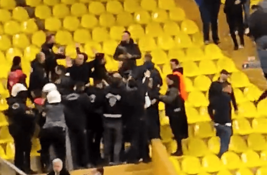 Në pjesën e dytë, një tension mes tifozëve ndërpreu për pak minuta lojën. Sipas mediave turke, mbështetësit vendas u rrahen me mysafirët nga Rusia, shkruan Lajmi.net