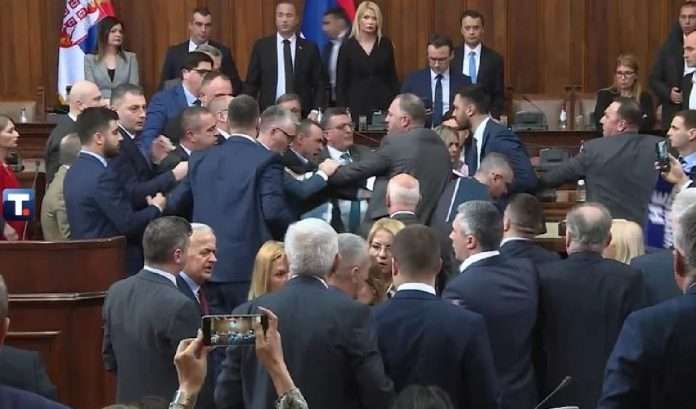 Në të njëjtën kohë raportohet se ishin edhe deputetët e SNS-së të cilët janë drejtuar drejt kësaj tryeze, ndërsa përleshja raportohet të ketë zgjatur rreth 15 minuta ndërsa më pas ndërhyri edhe sigurimi i Kuvendit.