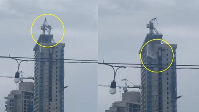 Dhe disa pamje të publikuara thuhet se tregojnë “këputjen e vinçit”, duke bërë që materialet e ndërtimit që mbante të përplaseshin në ndërtesë dhe të bien drejt tokës.