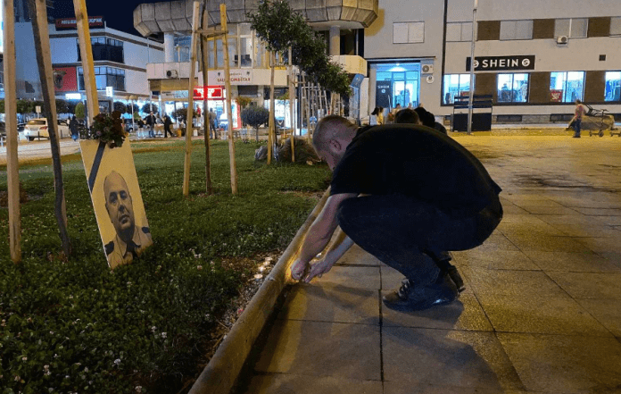 Homazhet për policin Afrim Bunjaku janë bërë në sheshin “Iliria” në Tetovë, ku janë ndezur qirinj.
