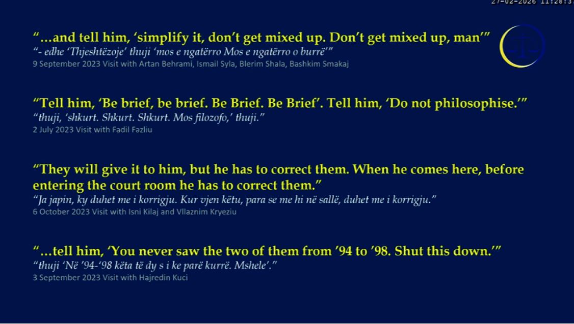 Në gjyqin e dytë që po mbahet ndaj Hashim Thaçit dhe të tjerëve janë shfaqur disa biseda, të cilat sipas Prokurorisë janë zhvilluar gjatë takimeve dhe komunikimeve që ai ka pasur me të bashkëakuzuarit në këtë rast dhe me persona të tjerë.