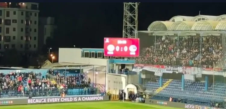 Në stadium janë edhe tifozët e Serbisë, që kanë tentuar të bëjnë thirrje anti-Kosovë.