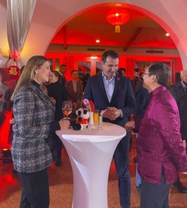 Në një mjedis të zbukuruar me fenerë të kuq, ambasadori kinez Zhou Ding përshëndeti të pranishmit duke theksuar se