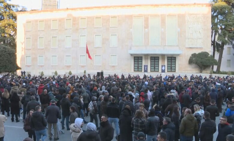 Disa qindra qytetarë janë mbledhur para godinës së Kryeministrisë në Tiranë për të protestuar kundër rritjes së çmimit të naftës në vend.
