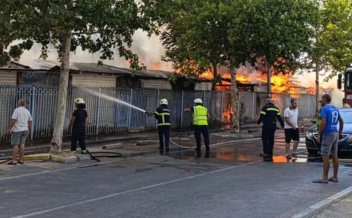 Tregtarë që përpiqen të shpëtojnë sa të munden nga malli i tyre dhe zjarrfikës që luftojnë me flakët, këto janë pamjet që vijnë nga tregu i Plazhit në Durrës.