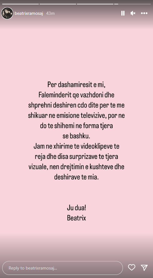 Në një postim të fundit të shpërndarë me fansat në InstaStory, Trixa tha se do të shihen në forma të tjera.