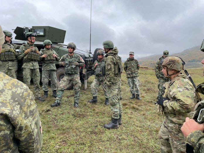 Trupat tokësore të Forcës së Sigurisë së Kosovës stërviten së bashku me trupat homologe të vëllezërve e motrave të forcave tokësore të Shqipërisë nga instruktorët e Brigadës Amerikane të Asistencës së Forcave të Sigurisë (SFAB).