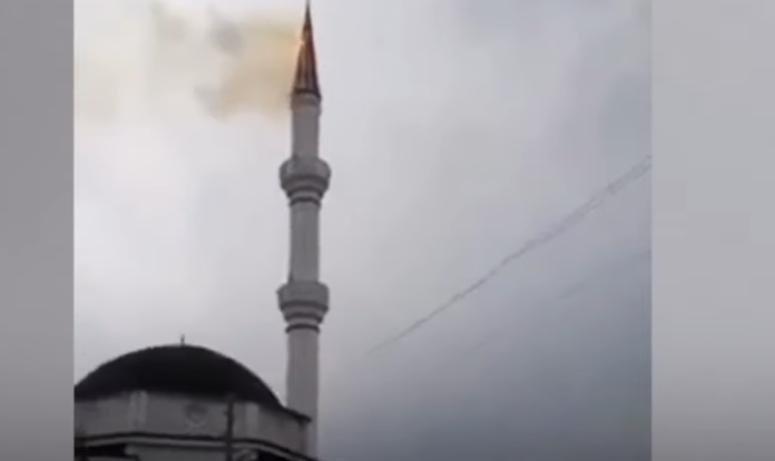 Minarja e një xhamie në qytetin e Tokatit të Turqisë është djegur pasi është goditur nga rrufeja. Ata që kishin vënë re incidentin kanë informuar zjarrfikësit dhe me ndërhyrjen e tyre është shuar zjarri pa e kapluar pjesën tjetër të xhamisë, shkruan TRT Haber. Momenti i zjarrit në minare u kap nga kamerat e telefonit të banorëve.