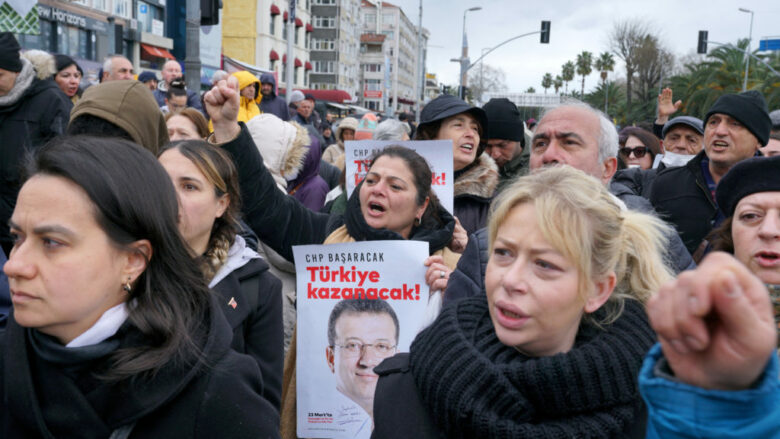 Imamoglu, rivali kryesor politik i presidentit Recep Tayyip Erdogan, u arrestua të mërkurën nën akuza për korrupsion dhe ndihmë ndaj një grupi terrorist, një lëvizje që partia kryesore opozitare e dënoi si “përpjekje për grusht shtet kundër presidentit të ardhshëm”.