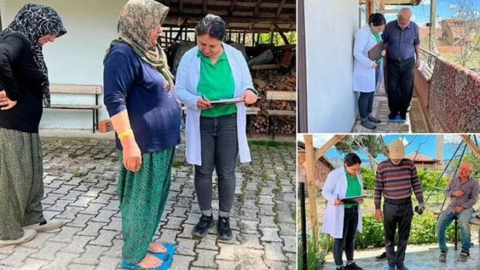 Foto nga e gjithë Turqia kanë treguar njerëz që udhëzohen drejt peshoreve dhe u matet gjatësia, përpara se të llogaritet pesha e tyre.