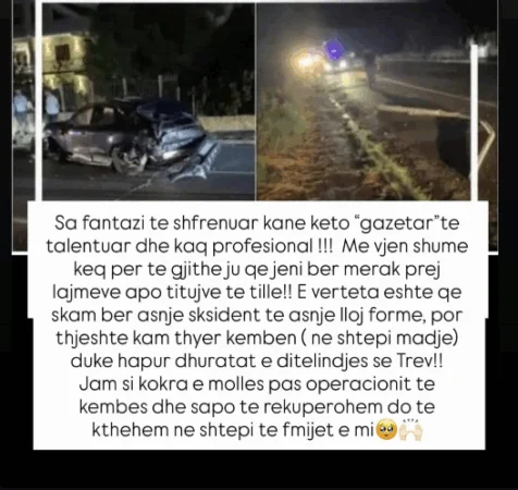 Ish-banorja e BBV 1 dhe moderatorja Einxhel Shkira ka reaguar pas lajmeve që kanë qarkulluar se kishte pësuar një aksident të rëndë.