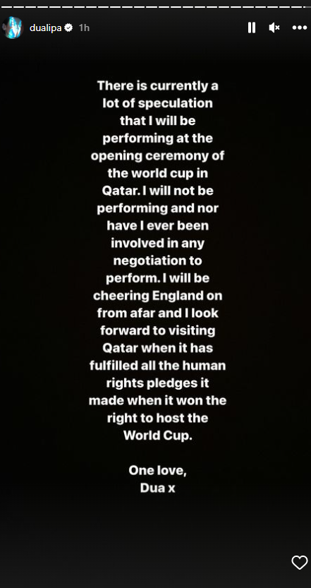 Para disa kohësh në media u raportua se artistja, Dua Lipa do të përformojë në ceremoninë e hapjes së Kupës së Botës në Katar.