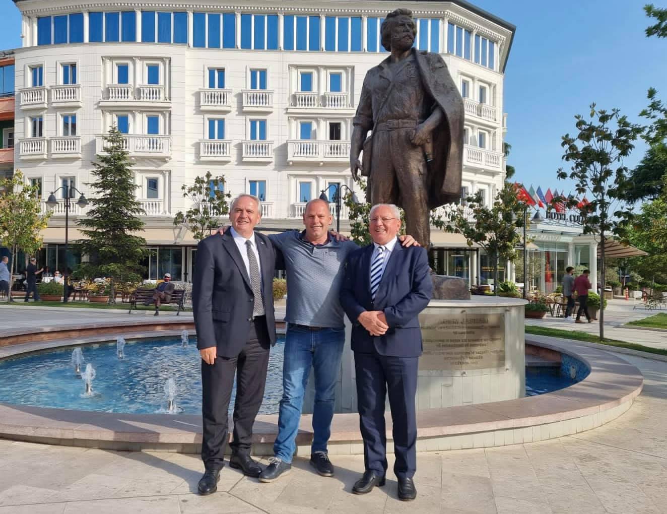 Takim miqësor në Tiranë, me ambasadorin Gjergj Dedaj dhe “Ambasador Nderi” i Kosovës në Gjermani, Gjon Berisha, me miq, pranë shtatores së Komandantit legjendar të UÇK-së, Adem Jashari, motivuesit dhe inspiruesit të një kombi dhe botës demokratike për çlirimin e vendit tonë.