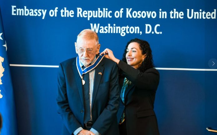 “Për këtë kontribut, sot, në Washington D.C., pata nderin që, në emër të Republikës së Kosovës, t’i dekoroj me Urdhrin e Lirisë dhe Urdhrin e Pavarësisë”.
