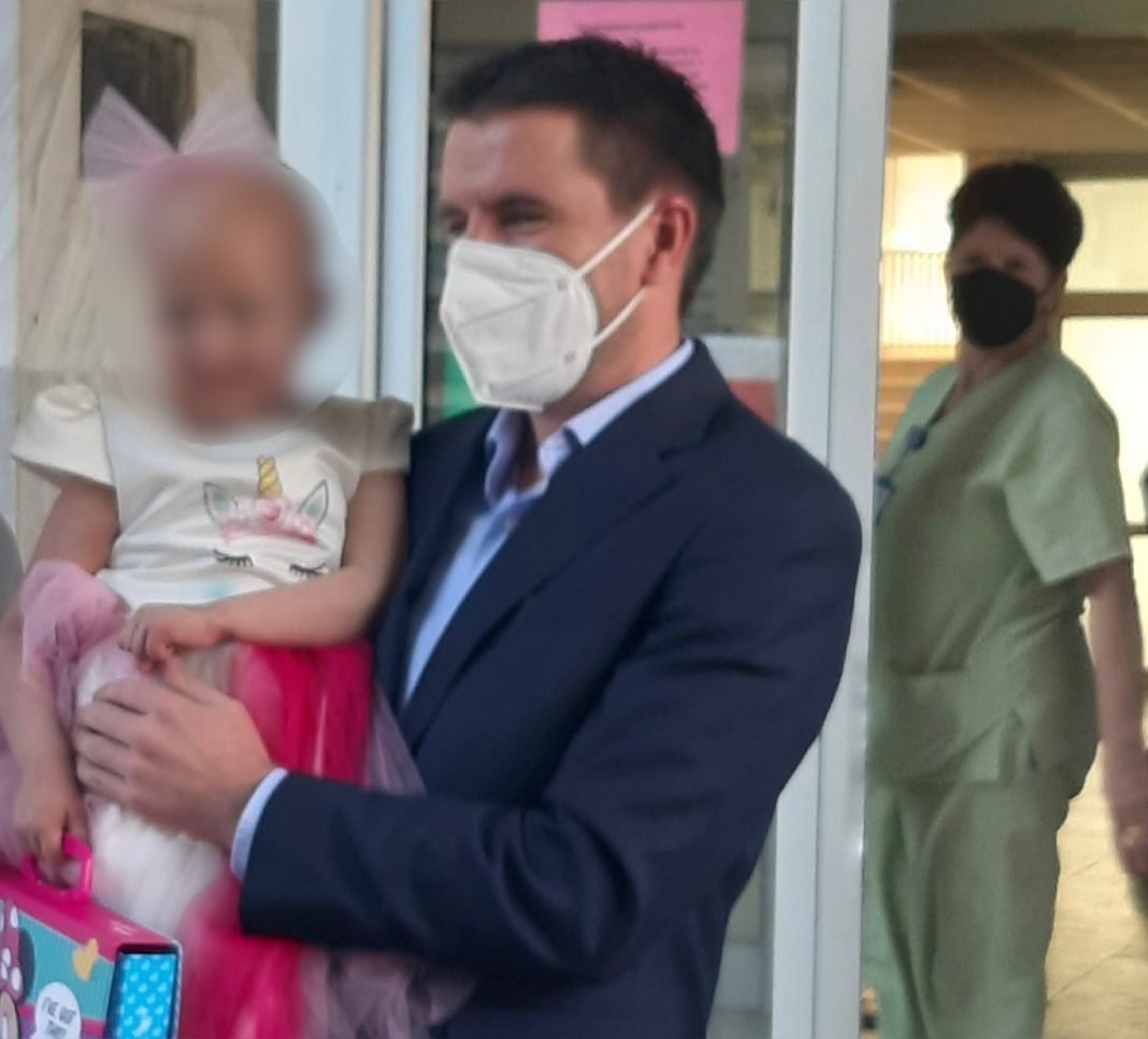 Në shenjë falënderimi qerasi me ëmbëlsira personelin mjekësor të cilët plotë nëntë muaj u kujdesën për të.