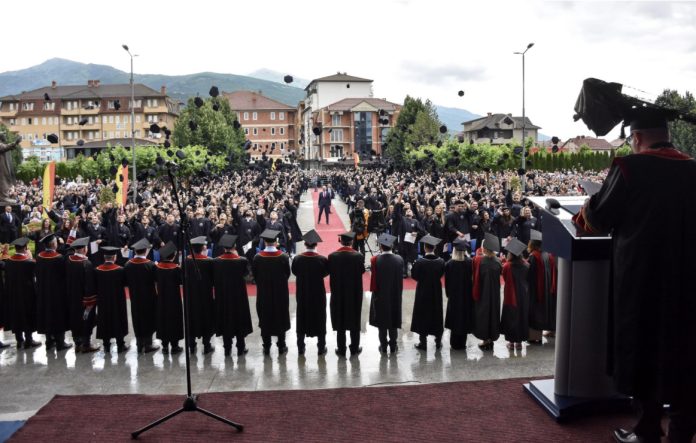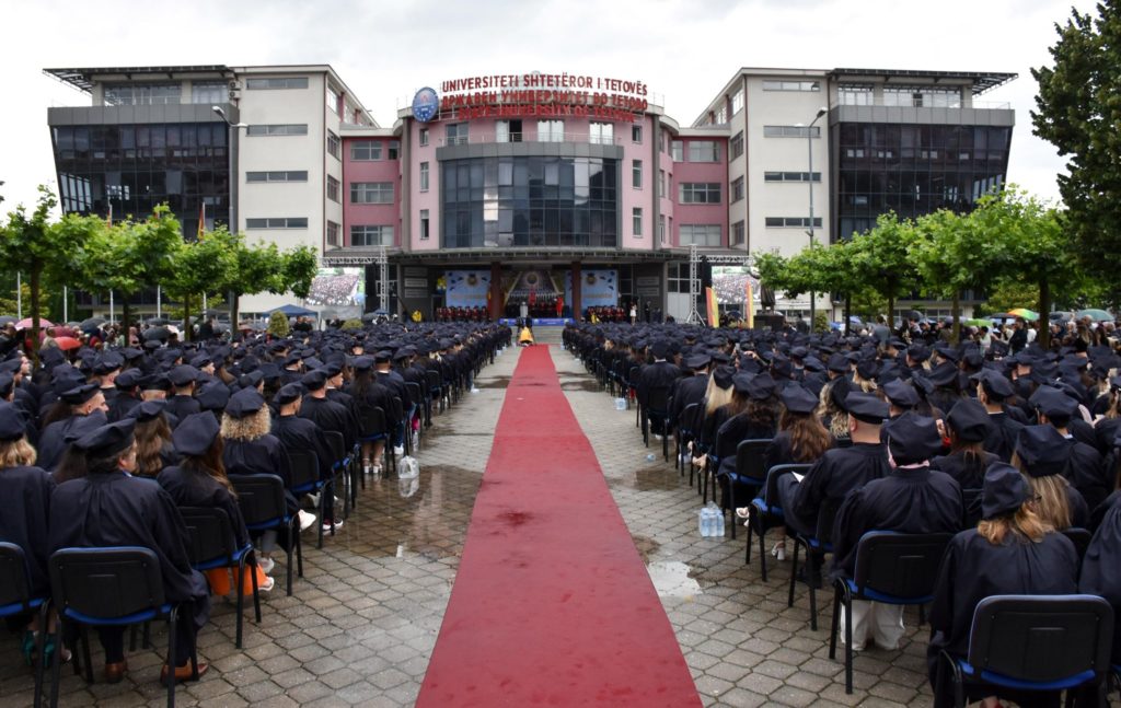 Në një atmosferë përplot emocione, rreth 1000 absolventë të Universitetit të Tetovës e shënuan sot përfundimin e studimeve themelore. Ceremonia e hedhjes së kapelave është manifestimi qendror ku absolventët bashkë me udhëheqësinë e Universitetit, pedagogët, prindërit dhe familjarët festojnë për sukseset dhe arritjet gjatë periudhës së tyre të studimeve. Në sheshin e Rektoratit të Universitetit tonë të pranishëm ishin mijëra qytetarë, të cilët duartrokitën bijtë dhe bijat e tyre për përmbylljen e këtij cikli studimesh, shumë të rëndësishëm për karrierën e tyre profesionale dhe akademike.