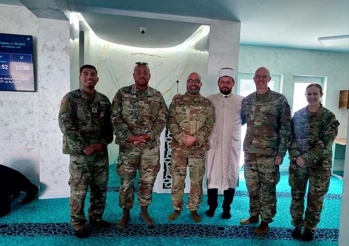 “Dje, pata nderin dhe privilegjin të mirëpres në xhaminë tonë miqtë tanë nga Kampi i Ushtrisë Amerikane në Bondsteel, Kapelanin Major Leslie, Kapelanin Major Hatfield, Major Nigrelle, SGT Sheridan, SFC Smith — KFOR-32”, ka shkruar imami Maliqi në një postim në Facebook.