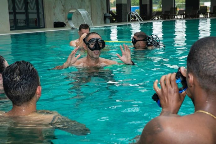 Ushtarët amerikanë të KFOR-it sot e kanë kryer një trajnim të notit me personelin e Shoqatës së Kërkimit dhe Shpëtimit të Kosovës në Prishtinë.