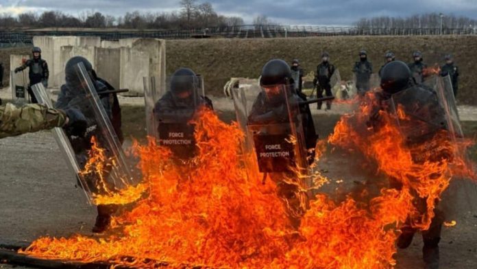 Ministria e Mbrojtjes së Shqipërisë ka bërë të ditur se kontingjenti shqiptar që sapo mori detyrën në misionin e KFOR në Kosovë, u angazhua menjëherë në stërvitjen për menaxhimin e trazirave dhe turmave të dhunshme.