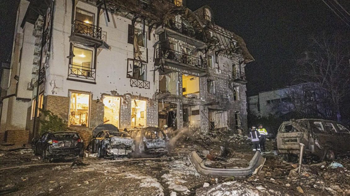 Shefi i policisë rajonale Volodymyr Timoshko tha për transmetuesin publik Suspilna, se njëra predhë goditi rrugën dhe tjetra një ndërtesë banimi trekatëshe. Zjarri shpërtheu në dy katet e spitalit përballë pallatit, por është shuar.