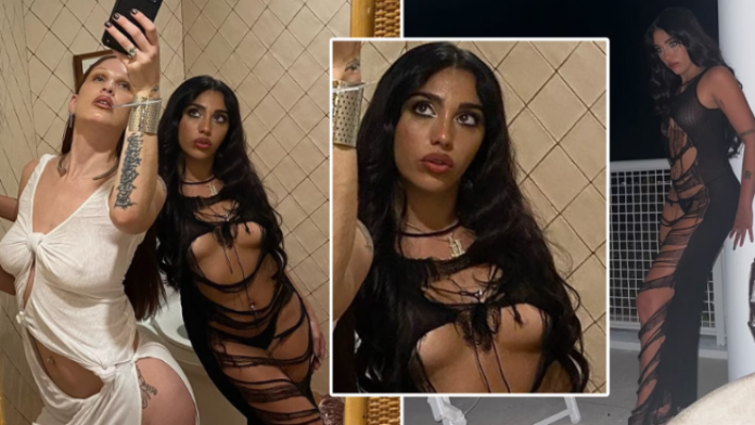 Në orët e hershme të mëngjesit të së shtunës, 26-vjeçarja ka postuar disa foto ku shfaqet me disa poza me një fustan të zi të, përkrah këngëtarit Eartheater.