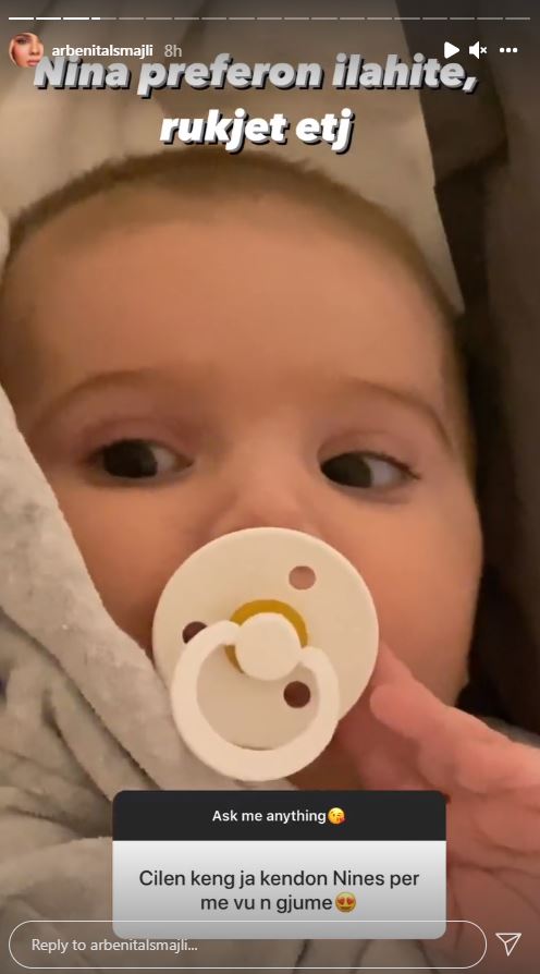 Ajo u pyet nga ndjekësit se cilën këngë ia këndon Ninës, para ta vënë në gjumë, dhe modelja u përgjigj: “Nina preferon ilahitë, rukjet dhe të tjera”, njofton Klankosova.tv.
