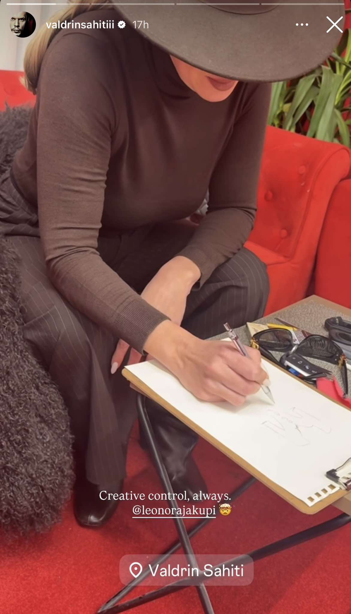 Sahiti ka ndarë me ndjekësit një moment nga puna e tyre e përbashkët në një postim në Instastory. Në video shihet Leonora duke sugjeruar ndryshime në skicën e veshjes për prime-in e ardhshëm të “BBVK”, shkruan “Kosovarja”.