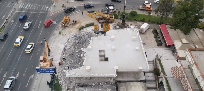 Me një turjelë hidraulike, Ndërmarrja Publike “Rrugët e Maqedonisë” vazhdoi edhe sot shembjen e ndërtesës ilegale para qendrës tregtare “Mavrovasja” në qendër të Shkupit. Pas disa orësh punë, gjatë ditës së djeshme gjysma e shtyllave të betonit të armuar u shembën. Pjesa tjetër do të shembet gjatë ditës së sotme.