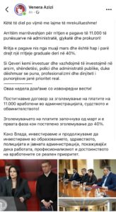 Si Qeveri kemi investuar dhe vazhdojmë të investojmë në arsim, shëndetësi, polici dhe administratë publike, duke dëshmuar se puna, profesionalizmi dhe dinjiteti i punonjësve janë prioritet real”, ka shkruar Azizi./tetova1.mk