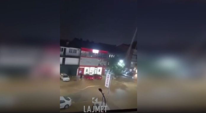 Në një video të siguruar nga Klan Kosova, shihen rrugët e mbuluara nga uji.